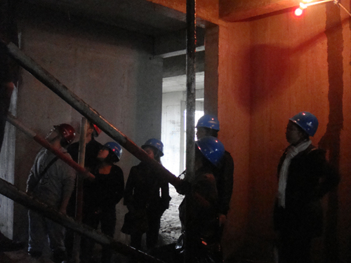 为提高员工业务工作技能,促进大家对建筑施工过程、施工工艺工序的学习和认识。2011年11月6日我公司组织施工现场观摩学习活动,公司总经理李军亲自带队,公司其它领导及全体员工参加。对平湖半岛沙河村拆迁安置房A区1#、2#楼;B区1#、2#及14#楼等施工现场实物进行观摩学习,学习的主要内容有基础工程、钢筋工程、模板工程、砌体工程、装饰装修工程和室外工程等,由公司总工程师詹世华同志主讲,采取重点讲解和员工问答方式进行,让员工们平时工作中的疑惑、疑问在现场得到直观解答。极大调动了员工参与性,现场洋溢着一片浓浓的学习气氛。