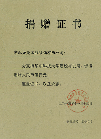 11月14日,公司参加了由湖北省建设工程造价咨询协会组织的向华中科技大学教育发展基金会捐赠的活动,为教育事业