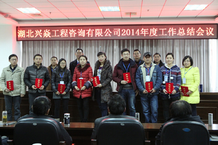 总工程师詹世华宣读了表彰2014年度优秀员工和优秀新员工的决定,公司领导向赵航等8名优秀员工和优秀新员工朱静颁发荣誉证书,优秀员工代表赵航、刘柳和优秀新员工代表朱静作了典型发言。