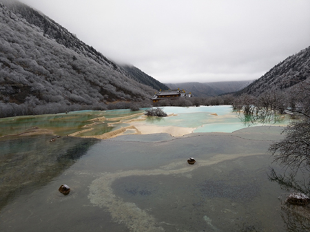 2016年11月5日,公司组织了一次九寨黄龙之旅,我才真切体味到“人在沟里走,如同画中行”的人间童话仙境。置身九寨沟,如梦如幻,不论你仰望,俯视,还是左顾,右盼,迎接你的无处不是美景。六天的行程中,我们游览了九寨黄龙,品尝到藏家的酥油茶、牦牛肉,观看到九寨千古情的风情表演。虽说在旅游车上度过了将近一半的时间,随之付出的代价也是颠倒的五脏六腑和接近支离破碎的臀部,但拍拍自己喜欢的景,那来自灵魂深处的震撼,拈花的感动,举杯邀月的情怀,把酒临风的洒脱,孤峰上坐起观灯的意境,让我们大声慨叹“不虚此行”。