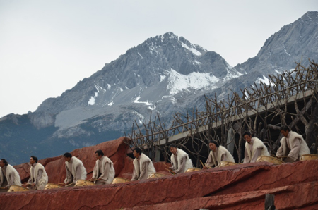 《印象丽江》,来自16个村庄的普通农民,500个有着黝黑皮肤的土生土长的本地人,用他们高昂的歌声,无邪的笑容以及真诚的目光,演绎了一场荡涤人心灵魂的盛宴。那种扑面而来的粗犷、自然的气息,感染了在场的每一个人。