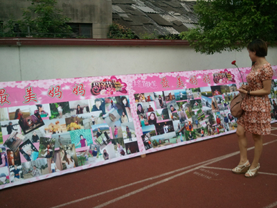 5月11日上午,应邀参加女儿学校金东方小学举办的第一届感恩母亲节活动。走进校门,通向操场的红地毯两侧站着两排穿着漂亮校服的小女生,她们手提着花篮,里面装满了康乃馨花,每一位母亲经过时都会收到一支康乃馨花和甜甜的祝福:“节日快乐!”。走进操场,一排小男生递过签名笔,让我们在签名幕上签下自己的名字,操场的右边是最美妈妈照片的展板,左边是孩子们的作品展示。我一路来到操场,被这一幕幕的温情感动着。